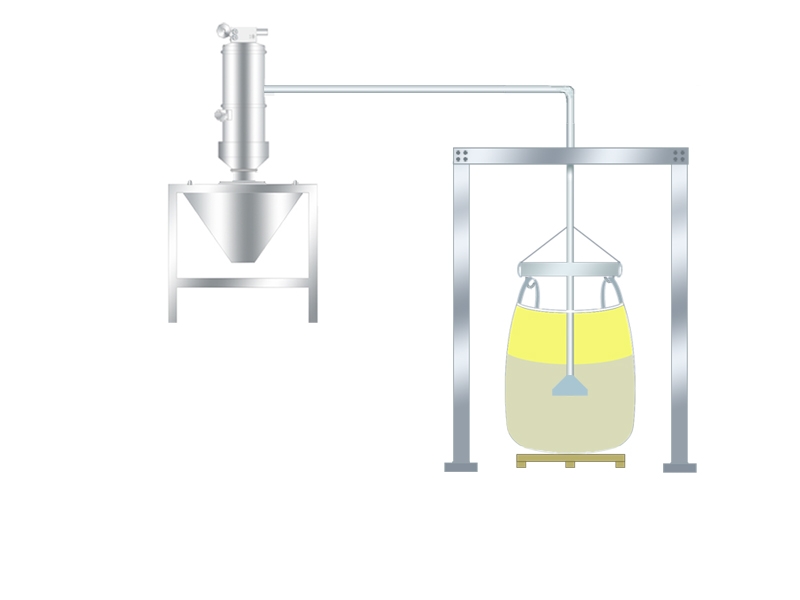 說明:此種吸料方式是由下往上吸料,拆包機(jī)下部出口需加裝補氣裝置。
